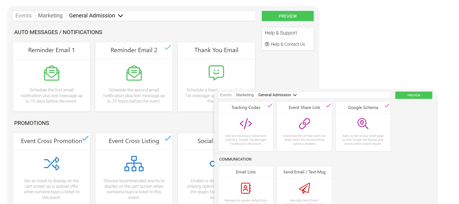 Launch campaigns your way with VBO Tickets. White-label checkout protects your brand while built-in email, social storefronts, and integrations—from Mailchimp to Meta pixels—give you flexible, end-to-end targeting and tracking power.